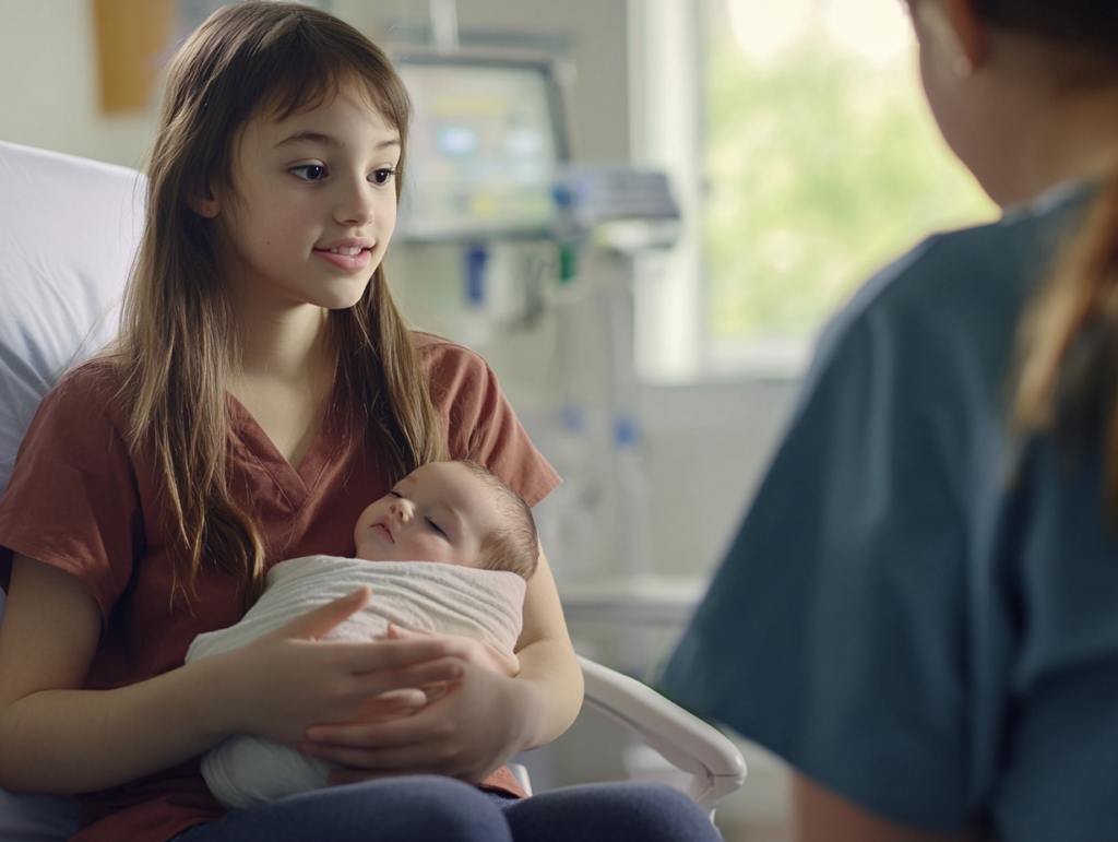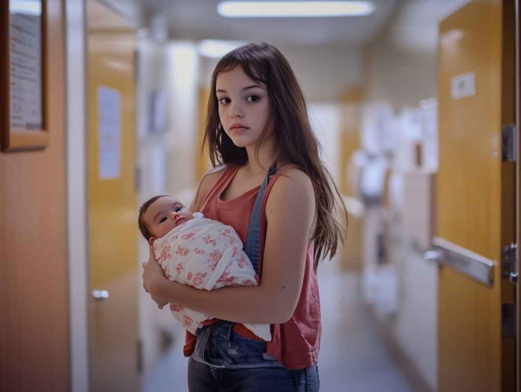 The delivery room was chaotic. Monitors were beeping, nurses calling for towels, and the air thick with urgency. Nurse Elise held the trembling hand of a nineteen-year-old girl named Olivia as she pushed through another contraction. Sweat streamed down her temples; her eyes darted toward the door as if expecting someone to burst in.