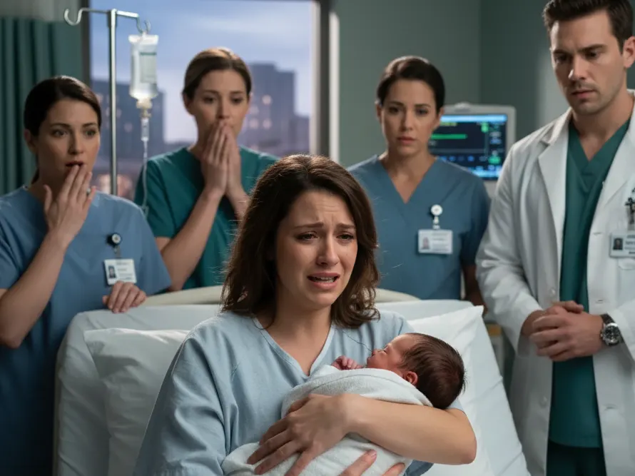 The question shattered her composure. Olivia’s shoulders convulsed, and she began to sob uncontrollably. The doctor froze, the clipboard hovering midair. Elise stepped closer, instinctively wrapping her arm around Olivia’s trembling frame. Her tears soaked through her scrubs, each one heavy with something more than pain.