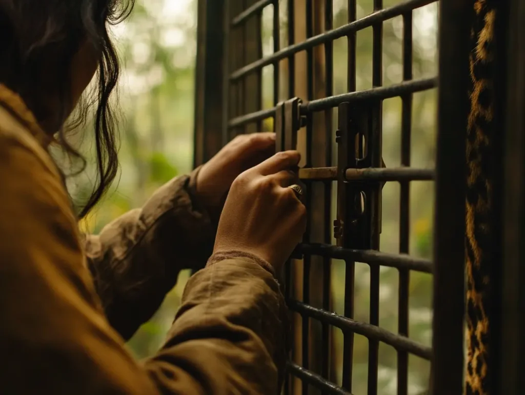 Ο σφυγμός της χτυπούσε δυνατά στα αυτιά της. Θα μπορούσε να καλέσει τους δασοφύλακες τώρα, αλλά μέχρι να φτάσουν, οι λαθροκυνηγοί μπορεί να είχαν φύγει, και η λεοπάρδαλη επίσης. Προχώρησε προς το κλουβί, με βήματα αργά και σκόπιμα. Η μυρωδιά της σκουριάς πύκνωσε στον αέρα. Τα μάτια της λεοπάρδαλης άνοιξαν, συναντώντας τα δικά της μέσα από τα κάγκελα.