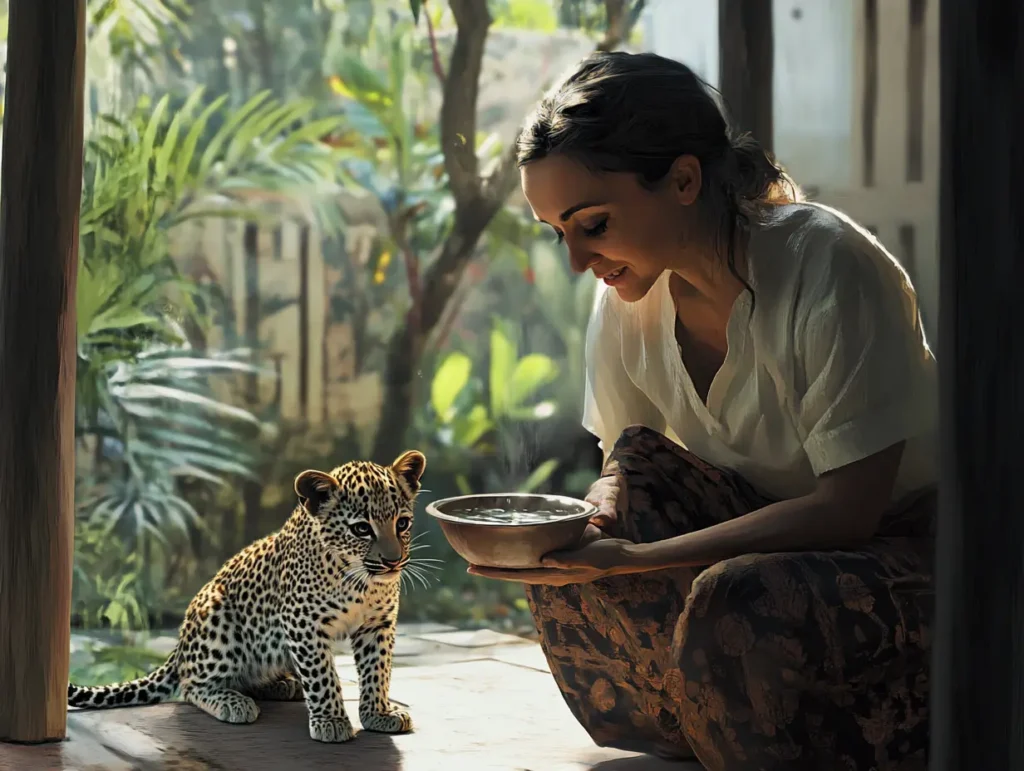 Η Κάθριν έκλεισε τα μάτια της. Δεν φώναξε. Απλά ψιθύρισε: “Σε παρακαλώ” Ένας νέος ήχος διέσπασε τον αέρα, μια απότομη, απελπισμένη κραυγή. Το κουτάβι. Βγήκε από τα δέντρα, μικρό αλλά ατρόμητο, και μπήκε ανάμεσα στην Κάθριν και την ενήλικη λεοπάρδαλη.
