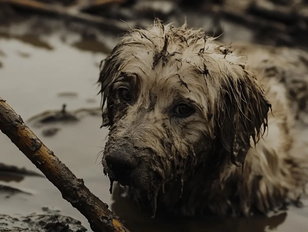La poitrine d’Owen se resserra. “Oh, non…” murmura-t-il en se rapprochant. Le sol aspirait ses bottes, chaque pas était lourd. “Il appela doucement, la voix incertaine. “Hé, mon garçon…” Les oreilles du chien frémirent, mais il ne se retourna pas. Il était à moitié enterré, une patte complètement immergée, le poitrail plaqué contre la terre.