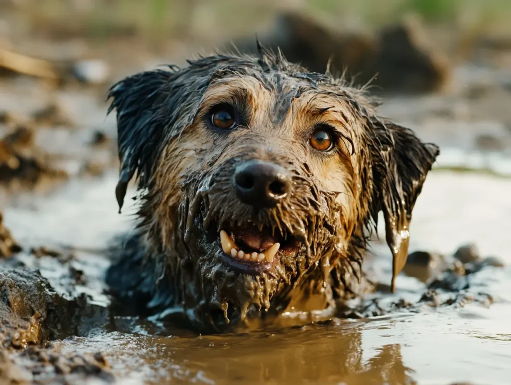 Le chien se crispa, un tremblement parcourant son corps. Ses yeux se fixèrent sur sa main, une lueur d’avertissement, ne fais pas ça. Owen s’est figé, son pouls s’est accéléré. Il murmure : “Doucement, je ne te veux pas de mal.” Mais la curiosité l’emporte sur la prudence. Il effleura à nouveau la boue, sentant cette fois une petite crête ou un coin, quelque chose de bien coincé sous la poitrine de l’animal.