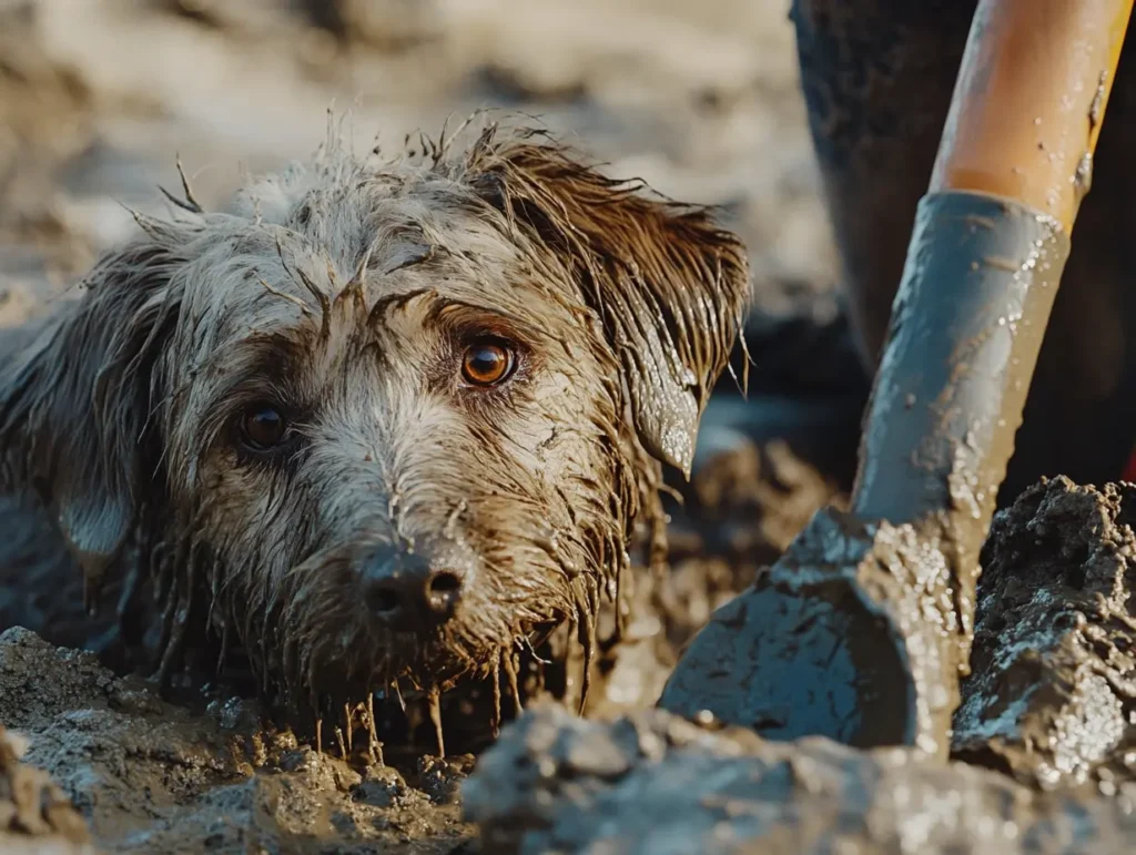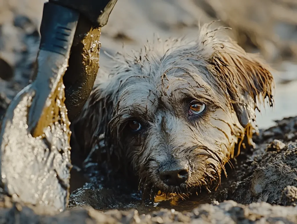 La boue continuait à avaler tout ce qu’il creusait. Chaque poignée qu’il dégageait se remettait en place, effaçant ses efforts comme si la terre était vivante. Les mains d’Owen étaient engourdies, sa respiration était saccadée, la pluie lui piquait le visage alors qu’il essayait de libérer le chien. Il gémit une fois, faible et tendu, les yeux écarquillés de panique.