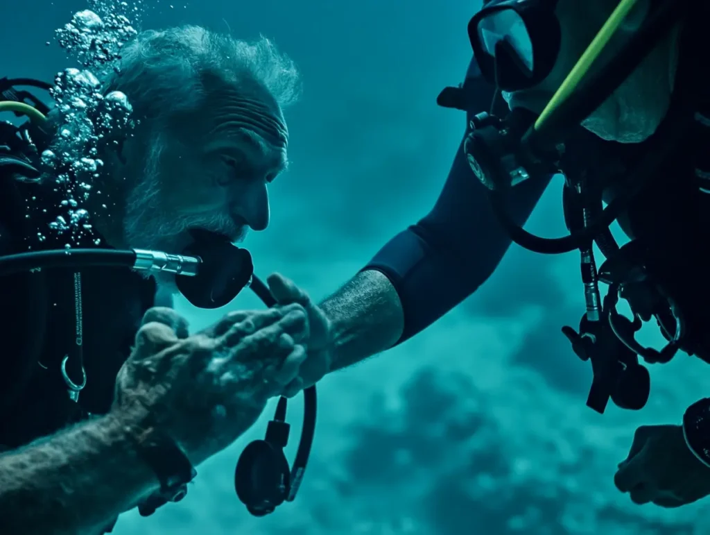 Ils avançaient à pas lents et mesurés, échangeant le régulateur toutes les quelques secondes. Chaque transfert semblait durer une éternité. Respirer. Passer. Respirer. Passer. À mi-chemin, le courant se renforça, les tirant vers l’arrière. Les muscles d’Elias hurlèrent et il donna un coup de pied plus fort, tirant le vieil homme vers l’avant avec un bras. La pression dans sa poitrine devint insupportable.