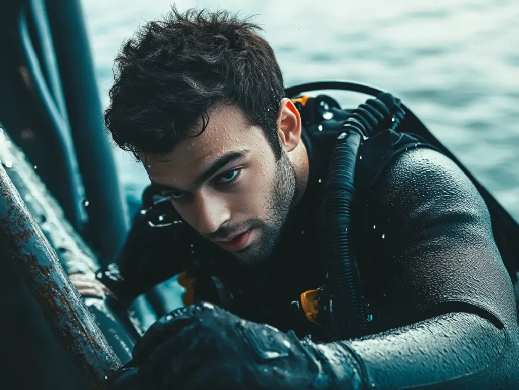 Le matin vint gris et lent, le genre d’aube qui fait ressembler la mer à de l’étain. Elias se déplaçait avec une détermination tranquille le long du quai, son souffle s’évanouissant dans l’air froid. Il chargea son matériel sur le bateau : bouteilles d’oxygène, masque, palmes, lampe étanche et un petit sonar qui sentait encore légèrement l’huile.
