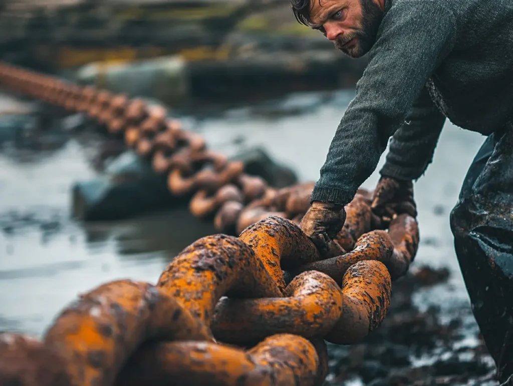 Le plus âgé, à la barbe grise et au teint hâlé, pointa une main tremblante vers la chaîne. “Tu as perdu la tête ? dit-il. “Tu veux que la mer s’abatte sur nous tous ?” Elias cligna des yeux, toujours agrippé à l’un des maillons rouillés. “C’est une chaîne”, dit-il d’un ton égal. “Probablement d’une épave. Rien de plus.”