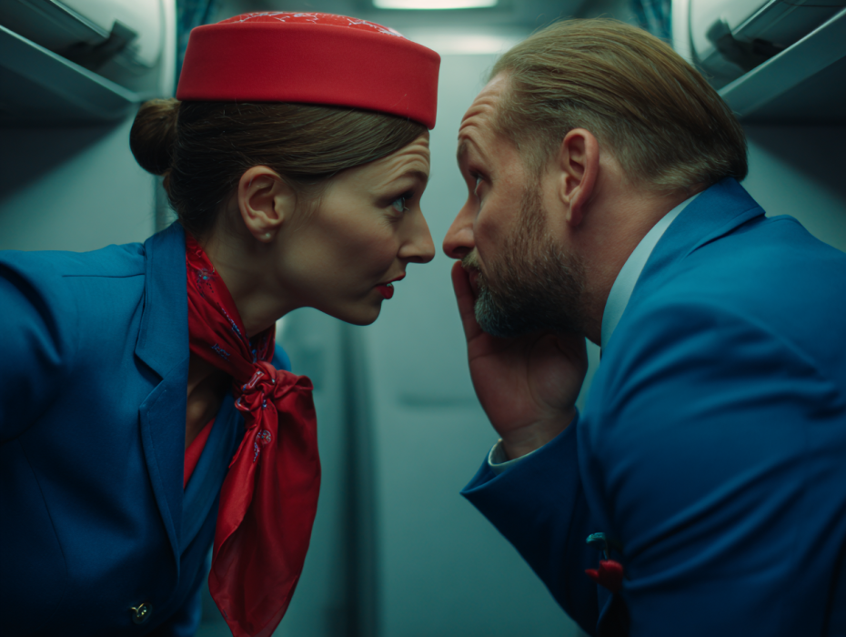 Near the galley, two crew members leaned close, whispering urgently. Alyssa strained to listen, catching only fragments between the hum of air vents and distant laughter. Their voices were tight, controlled, nothing like casual conversation. Whatever they were discussing, it wasn’t meant for passengers to hear.