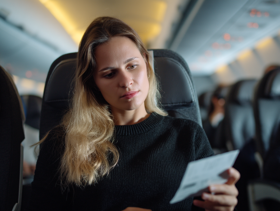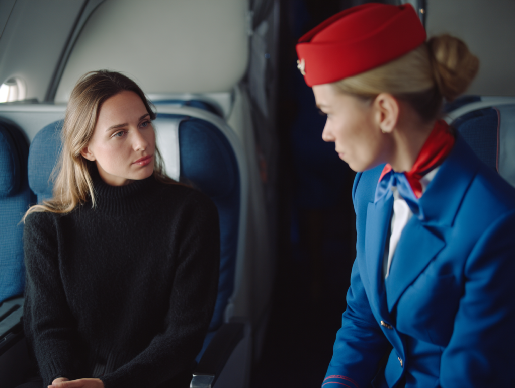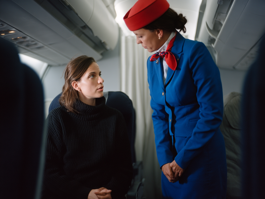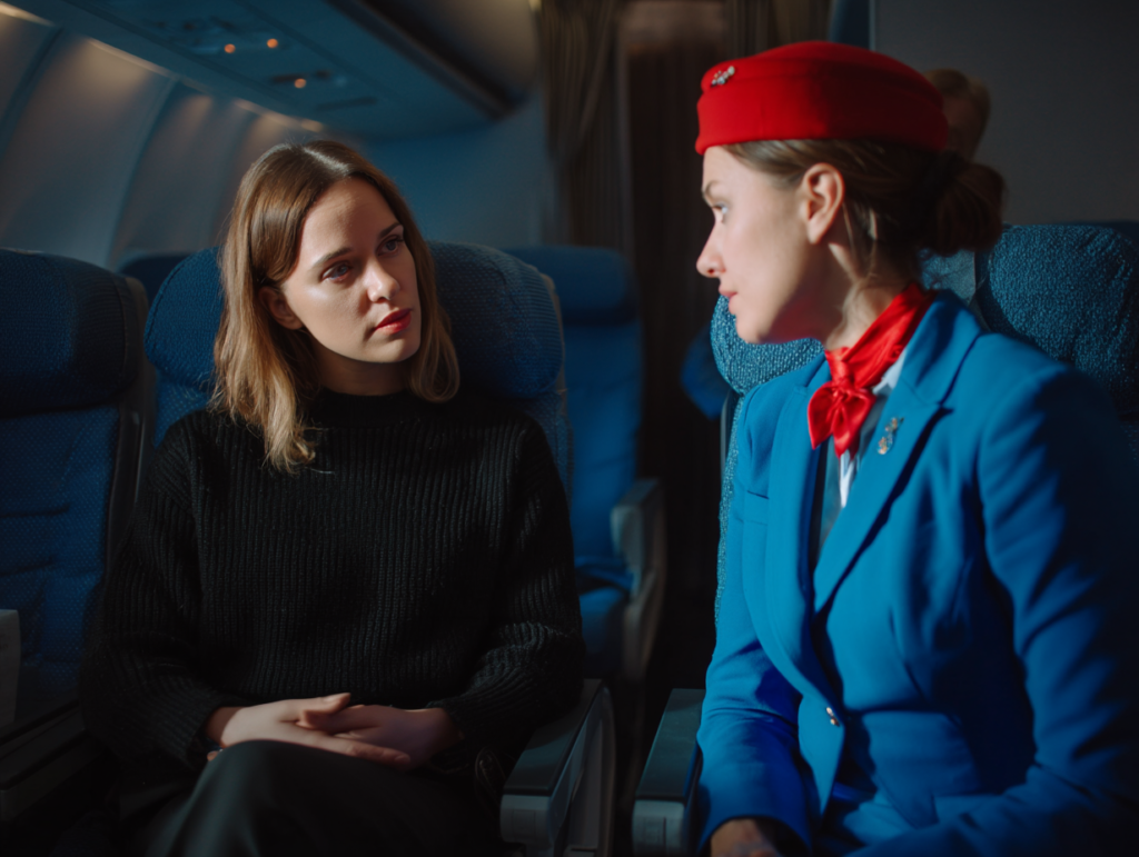The flight attendant returned to Alyssa’s row. Her face was tight, the urgency from before sharpened into something closer to dread. She didn’t speak. She didn’t smile. Her attention went straight to the seat number, as if trying to understand a complex mathematical problem.