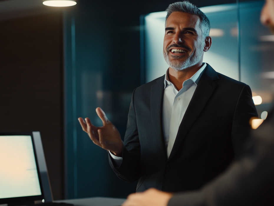 De volgende slide toonde een afbeelding van een man die een robot de hand schudt onder de titel Empathy Through Automation. “Dat is onze toekomst,” verklaarde Brad, terwijl zijn stem lichtjes kraakte. “Menselijke verbinding op schaal.” De HR-directeur hoestte in haar mouw. De CIO fluisterde tegen de CFO: “Meent hij dat?”