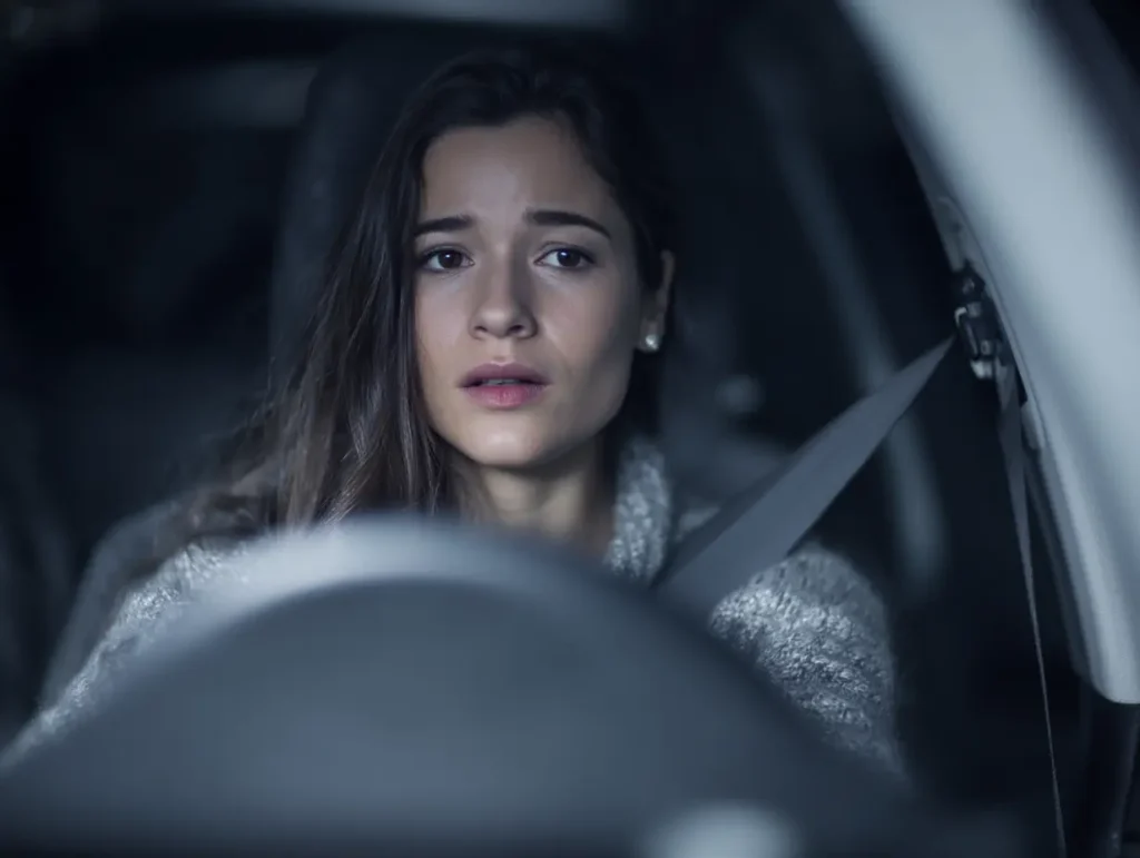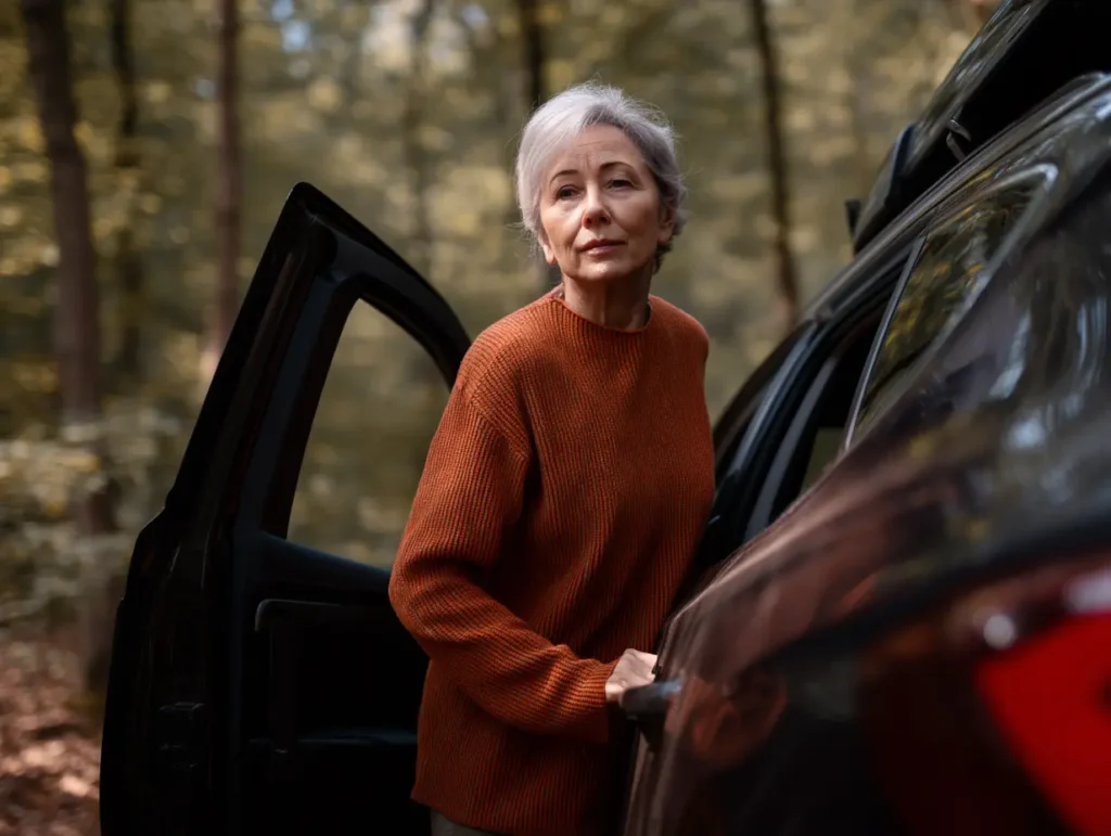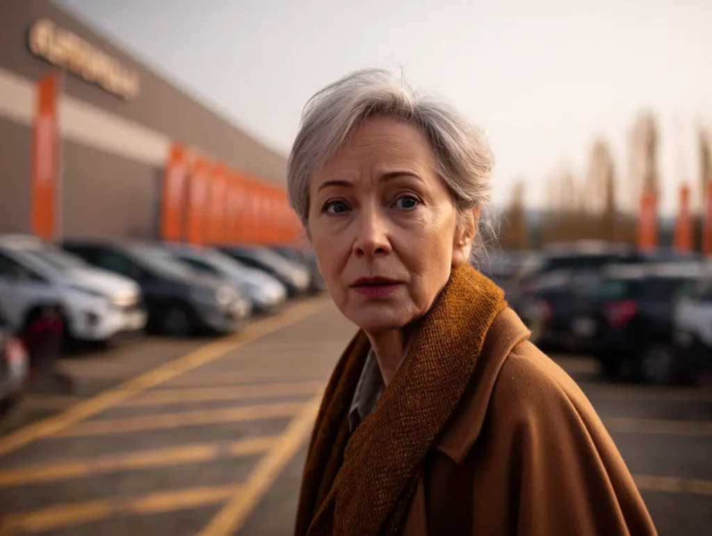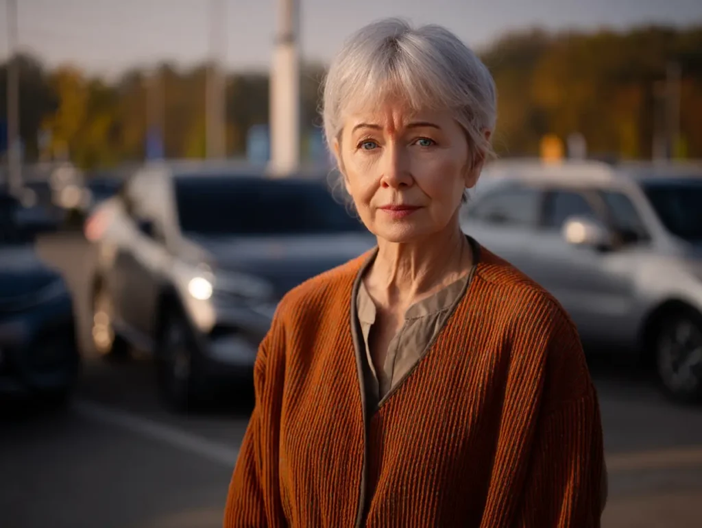 Haar adem stokte. Coyote? Zwerfhond? Ze voelde zich plotseling blootgesteld met de boodschappen aan haar voeten en de sleutels nog in haar jas. “Stap in de auto,” zei ze tegen zichzelf. Ze pakte de overgebleven tassen en strompelde naar het bestuurdersportier. Haar vingers frummelden naar de sleutels.