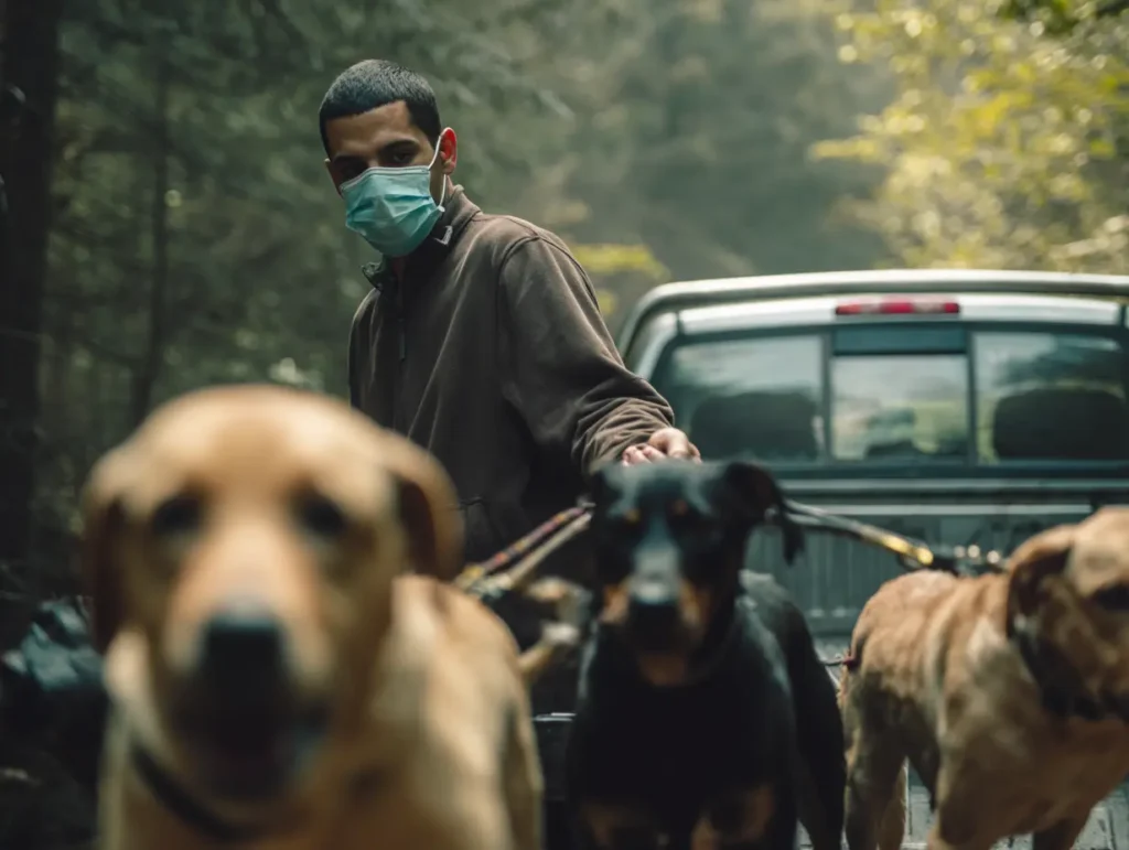 De gemaskerde man verdween naar achteren. De derde man haastte zich om de schuur verder te openen. Binnen rammelden de kooien. Honden schreeuwden het uit toen er aan deuren werd getrokken, kettingen rinkelden, lichamen werden versleept en gedragen. De hele operatie kwam in paniek. Een grotere vrachtwagen rolde naast de schuur, de motor draaide en de deur stond al open.