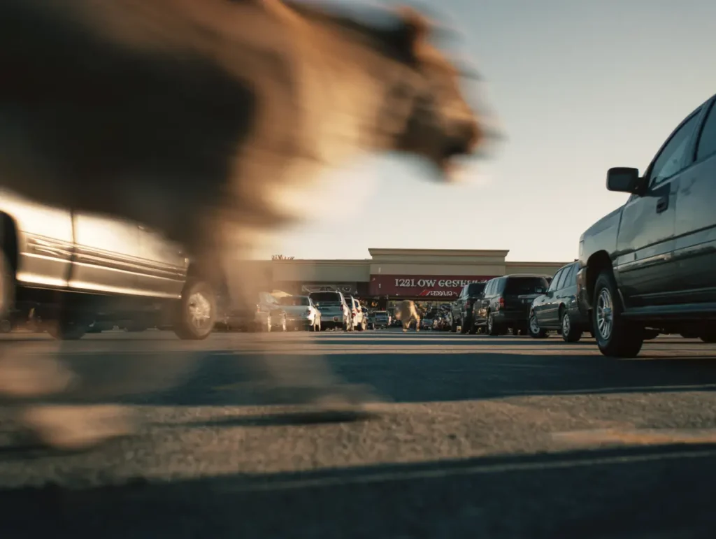 Ze ging rechtop staan en scande het terrein. Een minibusje draaide stationair. Een vrouw gespte een peuter vast. Een verdwaald karretje rolde tussen de rijen. Gewoon. Toch verdween het gevoel niet. Toen bewoog er iets. Een donkere gedaante sneed laag tussen de geparkeerde auto’s door – snel, beheerst – weg voordat haar ogen zich erop konden richten.