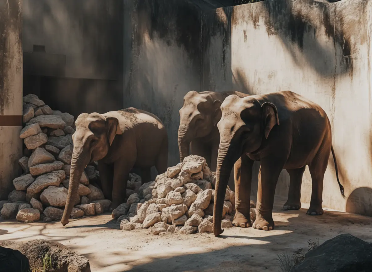 Bezoekers werden geëvacueerd nog voor de poorten opengingen. Neushoorns ijsbeerden in hun hokken, flamingo’s stonden ongemakkelijk bij elkaar en de giraffen weigerden naar binnen of buiten te komen, alsof elke diersoort de spanning van de olifanten kon voelen. Om de paar minuten liet de matriarch een laag, waarschuwend geluid horen dat het personeel deed huiveren.