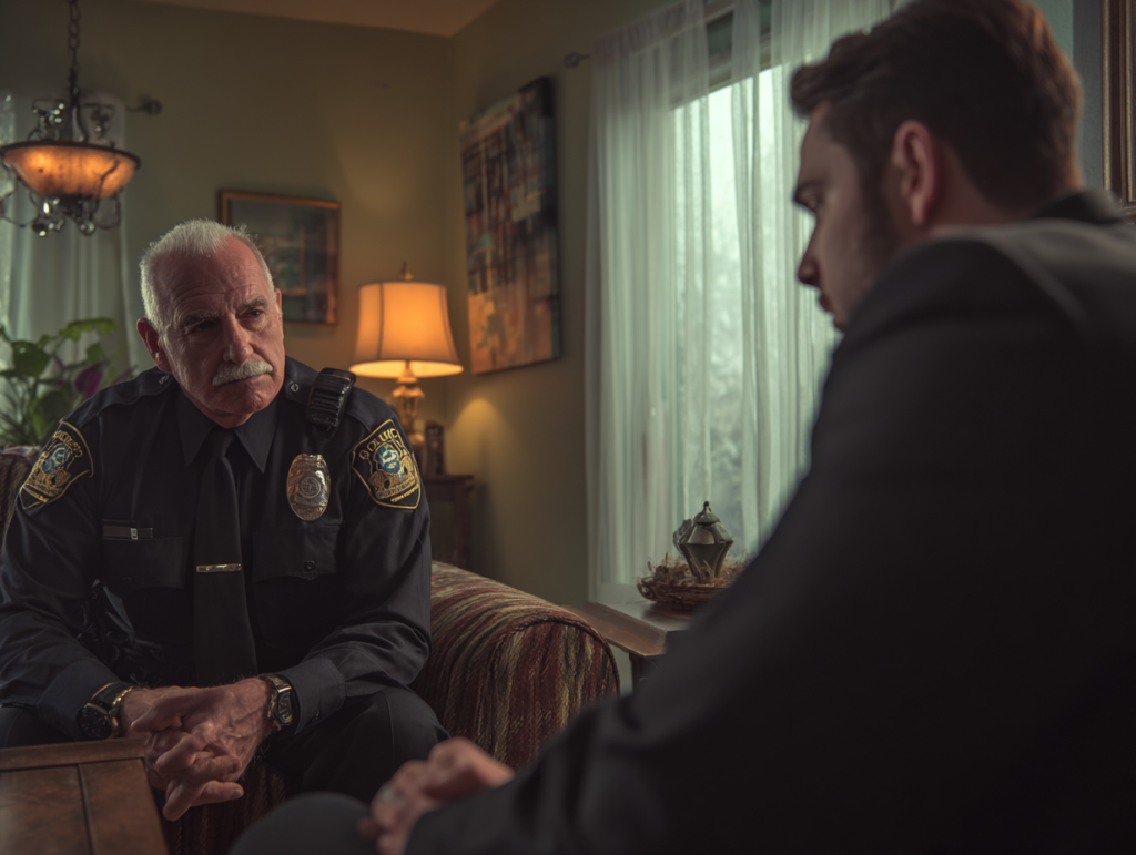 Binnen een uur arriveerden er twee agenten. Adam vertelde alles over hoe ze was verdwenen, haar onbereikbare telefoon, het vreemde boeket, het verlaten gebouw. Zijn stem trilde terwijl hij sprak, maar hij hield elk detail vast alsof het levenslijnen waren die haar naar huis konden brengen.