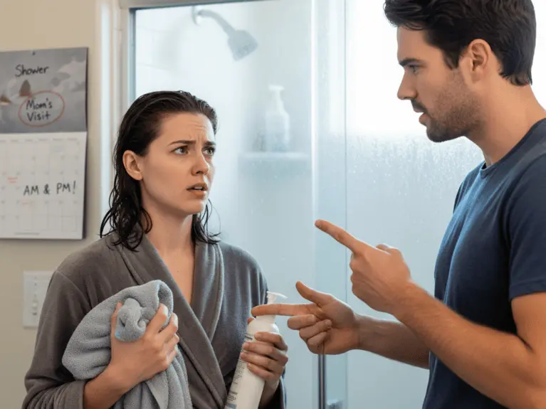 Op de spiegel stond ook een checklist: afspoelen, handdoek vouwen, deurklink afvegen. “Welkom terug,” riep hij terwijl hij haar liefdevol inspecteerde. Evelyn drukte haar handpalmen tegen het porselein van de slaapkamer om zichzelf in evenwicht te houden. Ergens tussen genegenheid en controle was er iets verschoven. Dit, besefte ze, was nieuw, maar misschien ook niet helemaal nieuw..