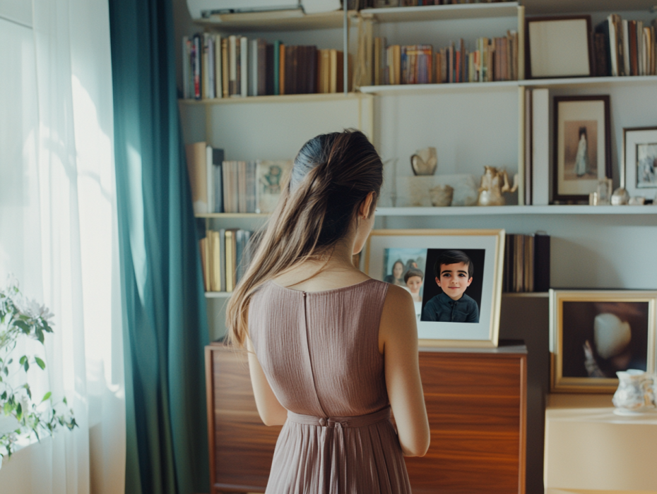 Binnen viel het licht op een gang met perfect uitgelijnde lijsten. Op elke foto spiegelde Aaron de houding van zijn moeder op verschillende leeftijden – opgeheven kinnen, gehurkte schouders en een glimlach op hetzelfde beleefde wattage. Evelyn voelde een stilte in de lucht, het soort dat de regels volgt, zelfs als niemand spreekt.