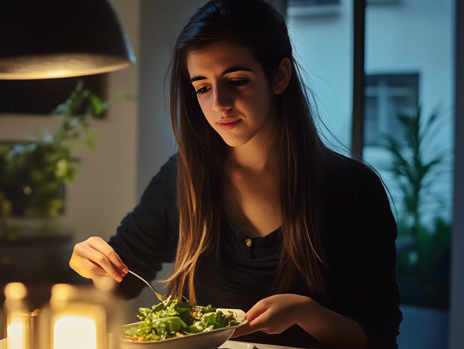Hij vorkte en serveerde het eten in verhoudingen waarvan hij zwoer dat ze het “licht, vol, maar niet traag” zou houden Het zag er mooi uit – granen werden geometrisch ondersteund en eiwitten in een symmetrie geplaatst, met de belofte van een goede gezondheid. Ze at en voelde zich goed, maar er knaagde iets in haar: wiens honger was ze aan het stillen en waarom moest het zo precies?