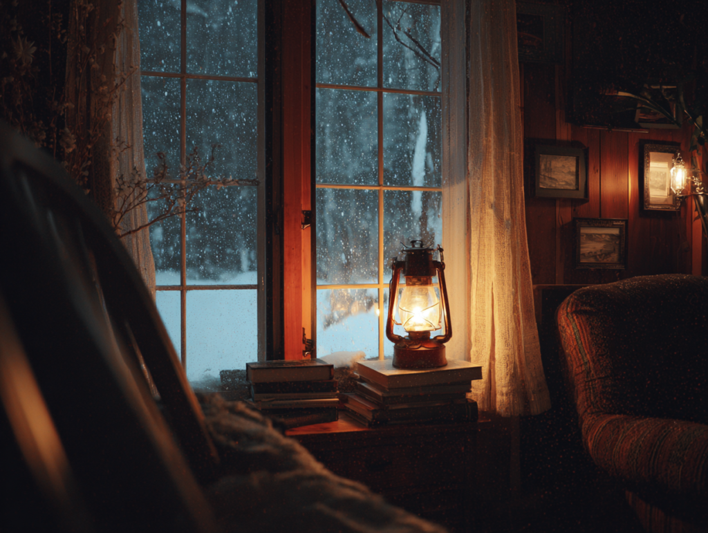 Ze doorliep de avondroutines bij kaarslicht toen de stroom uitviel. De wind suisde langs de dakrand en liet de ruiten trillen. De knusheid neigde naar opsluiting; elk geluid buiten scherpte haar oren. Lauren zei tegen zichzelf dat het gewoon het weer was, niets meer, terwijl de schaduwen over de vloer langer werden.