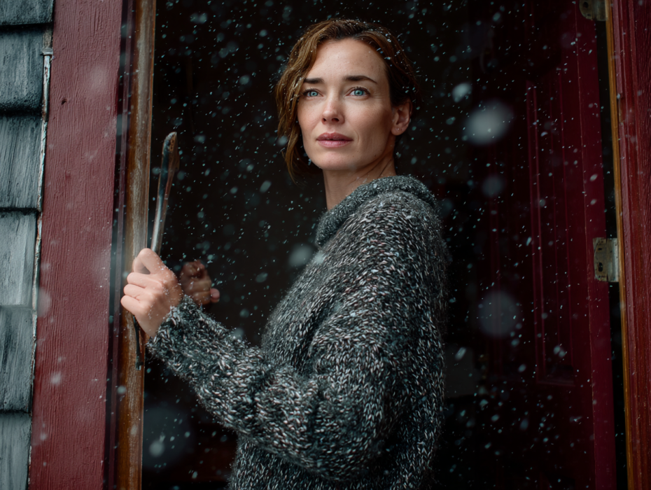 Toen kwam het geluid – eerst zacht, toen dringend tegen de rammelende deur. Lauren bevroor, haar hart versnelde. Wie zou er buiten zijn? Probeerden ze in te breken? Ze gluurde door het matglas en zag alleen wervelend wit en een ineengedoken gedaante. Aarzeling en angst grepen haar vast, maar de koude nacht trok harder.