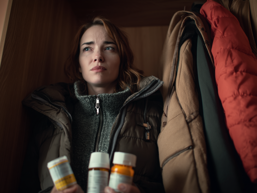 Op een avond, toen ze Mabel’s jas bij de deur opruimde, streken Lauren’s vingers over een zak. Er zaten drie rammelende pillenflesjes in, met etiketten van verschillende artsen uit onbekende steden. “Om te slapen,” stond er op de ene. “Angst,” stond er op een andere. Overlappingen vielen haar op: dezelfde klasse, verschillende doses, allemaal recente vullingen.