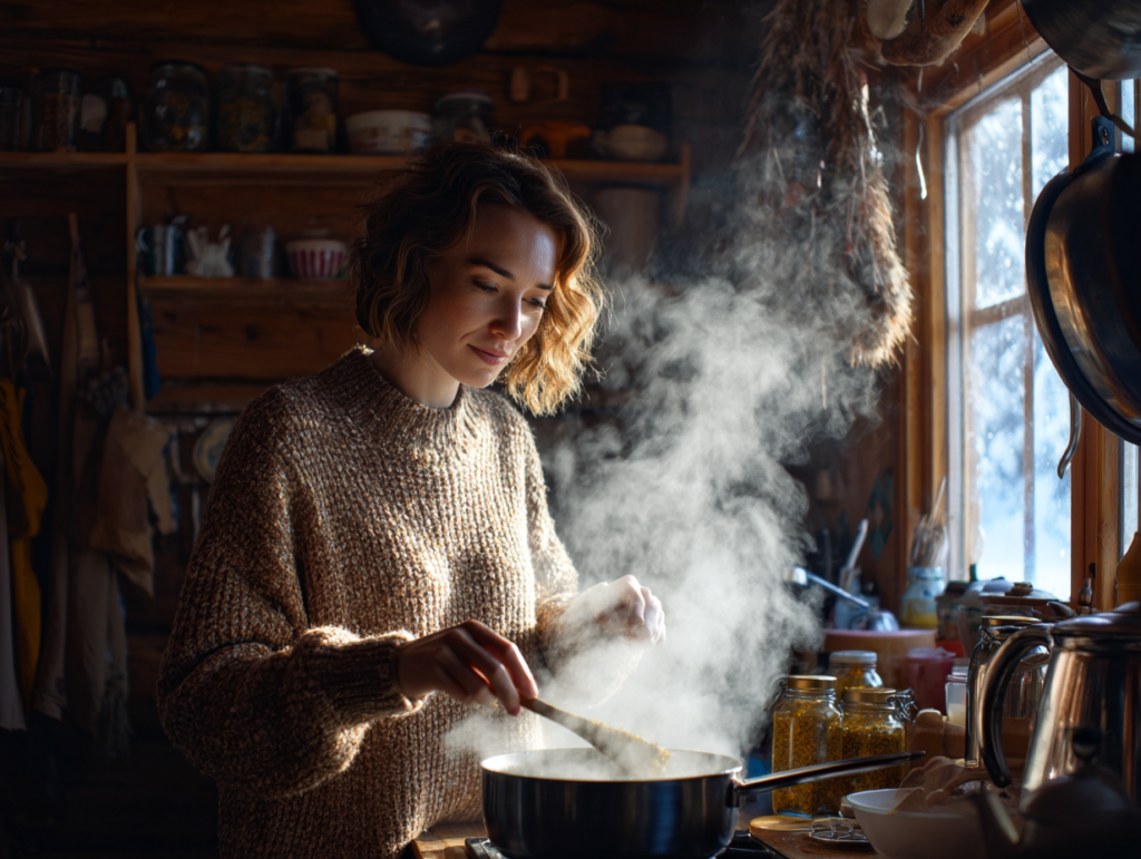De lucht was die dag zwaar en drukte sneeuw tegen de ramen van het huisje tot de buitenwereld een grijze smeer werd. Lauren keek toe vanuit de keuken, terwijl ze in soep roerde die de lucht vulde met tijm en warmte. De radio op het aanrecht ruisde tussen de weerberichten door.