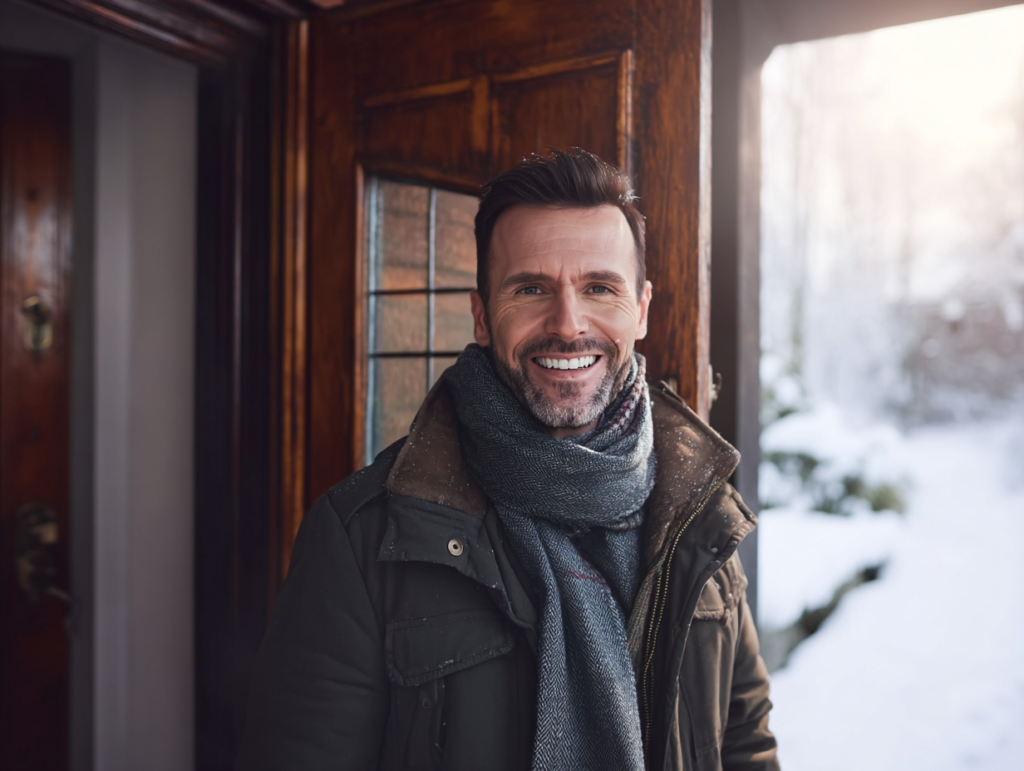 Lauren’s vingers klemden zich vast aan de deurpost, een kleine, onbewuste steun tegen de kou en het onverwachte. Binnen, achter haar, knetterde het vuur. Toen ze met een plotselinge beweging de klink omdraaide, keek de persoon buiten, gebundeld tegen de kou, plotseling op. Het deed Lauren’s hartslag haperen..