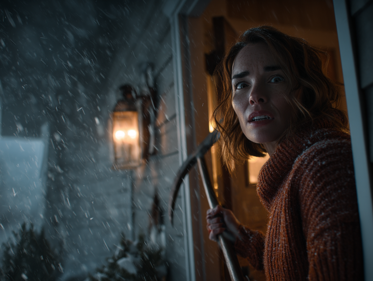 Met de pook stevig in haar handen deed ze de deur op een kier, zich schrap zettend om te dreigen en te schreeuwen als het nodig was. Een oudere vrouw stond daar, de sneeuw korstte haar jas, haar wangen rood van de kou. De oudere vrouw mompelde met een dun stemmetje: “Ik dacht dat dit mijn huis was. Alsjeblieft, het is koud.” Geen paniek, alleen vermoeidheid en lichte verwarring in haar bleke ogen.