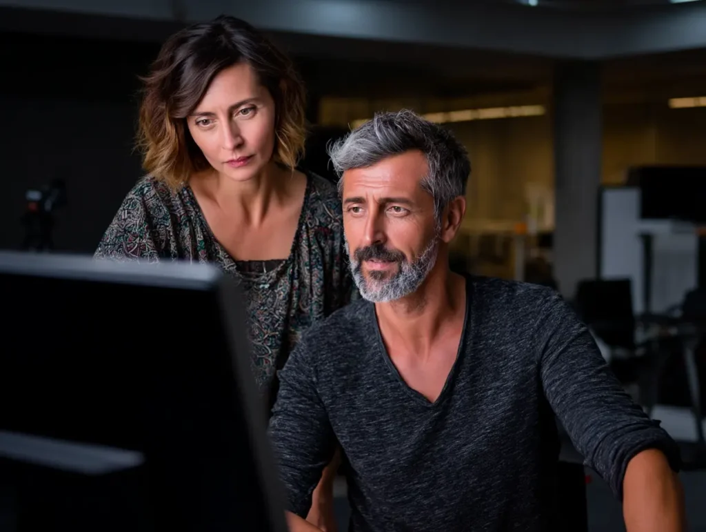 “Meneer Callahan.” Ze schudde hem de hand met haar beide handen, een gebaar dat zowel professioneel als oprecht spijtig overkwam. “Bedankt voor uw komst. Achterin heb ik alles klaargezet.” De montagekamer was klein en werd gedomineerd door een grote monitor, de trouwportefeuilles lagen opgestapeld langs de planken, het ochtendlicht viel ijl en bleek door een stoffig raam met uitzicht op de steeg.