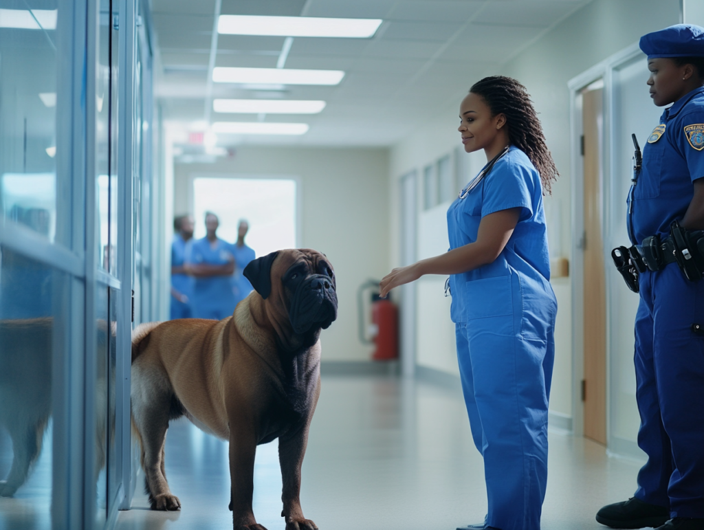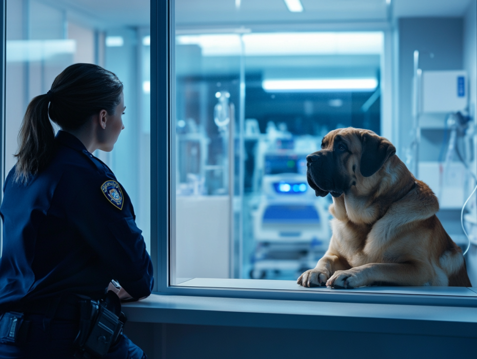 O mastim os seguiu pelo corredor, silencioso, mas imponente. Os seguranças tentaram bloquear seu caminho; ele emitiu um ronco profundo que sacudiu as costelas de Elena. “Deixe-o ficar”, disse ela com firmeza. “Ele a trouxe para cá. Ele pode ser o animal de estimação dela, pelo que sabemos.” Os guardas hesitaram, mas o cachorro não. Ele ficou por perto, sem tirar os olhos da maca.