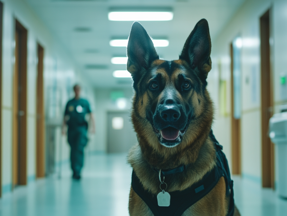 O som chamou a atenção de todos. Os visitantes pararam no meio do caminho, os enfermeiros congelaram no meio do prontuário. A mão de Elena instintivamente encontrou o pescoço de Valorian. “Calma”, ela sussurrou. Mas o olhar do cão havia se transformado em um foco preciso de orelhas afiadas e corpo trêmulo. O homem deu um meio passo para trás. “O que há de errado com esse animal?”, ele exigiu.