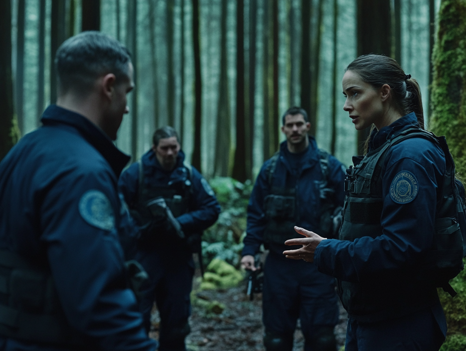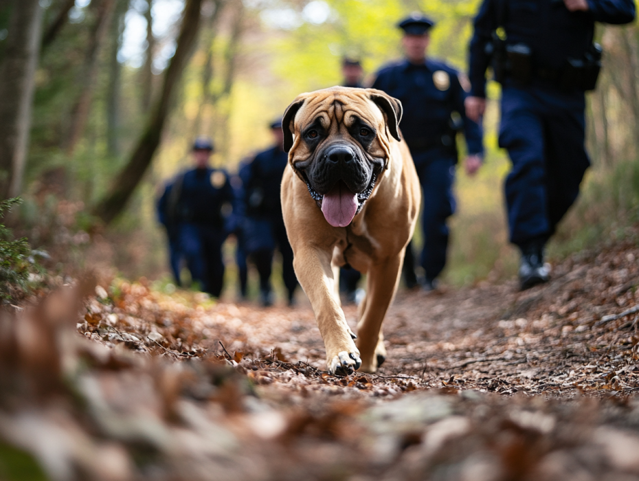 Quinze minutos depois, eles chegaram à linha das árvores, onde o asfalto deu lugar à lama. Valorian rosnou baixo, inquieto. O treinador soltou sua guia. “Muito bem, herói. Mostre-nos.” O mastim deu um passo à frente, com o nariz no chão, movendo-se com uma graça surpreendente para seu tamanho. O cão policial o seguiu, choramingando em seus calcanhares.