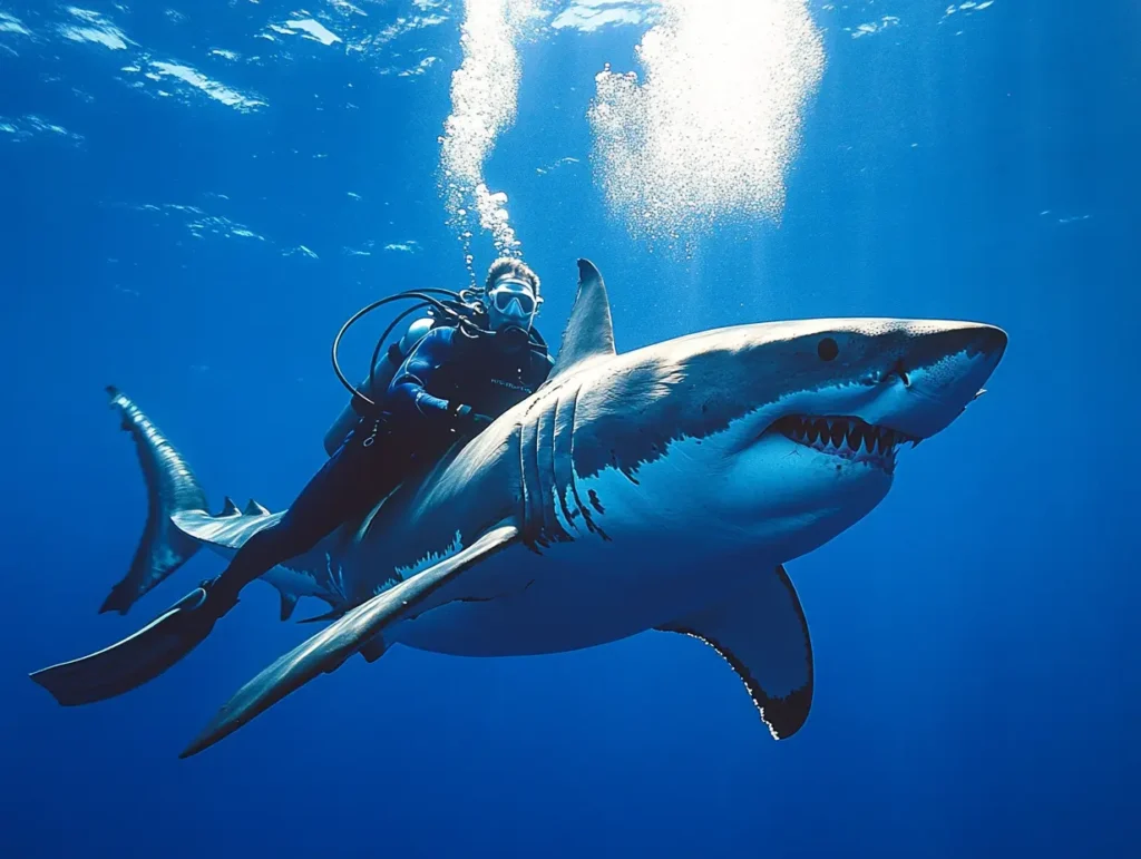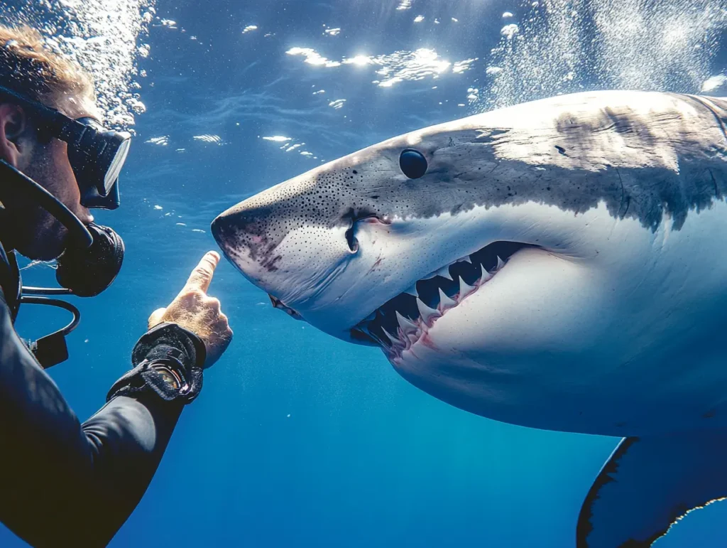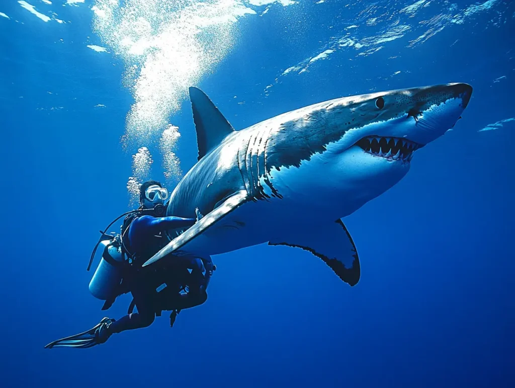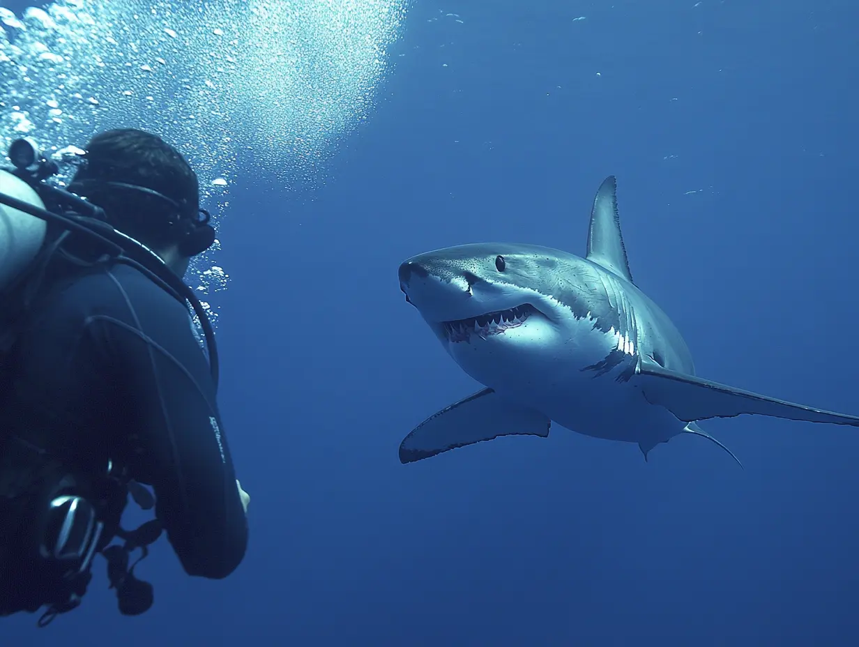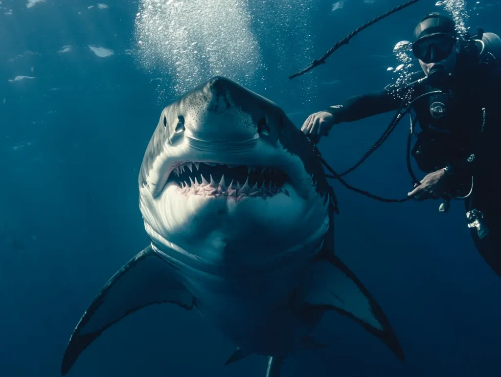 Instead, the great white veered, circling, cutting between him and the drifting plume of devastation. It was guiding him, pushing him away from danger. Marcus’s chest heaved. He forced air slowly through the regulator, eyes locked on the great predator as realization clawed its way through his panic. It wasn’t attacking him. It was steering him clear of the blast.