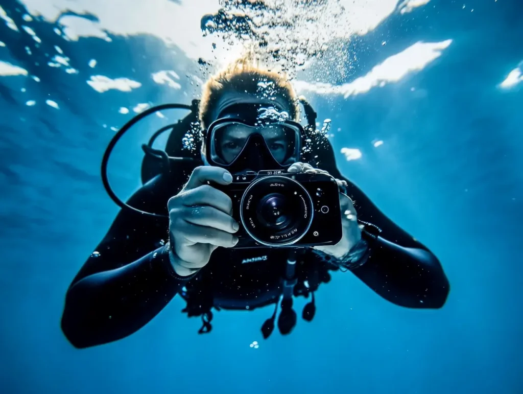It hovered there in the water, immense and unmistakable, waiting. Marcus froze, suspended in the water, his heartbeat echoing in his ears. The shadow loomed in the distance, not advancing, not circling — just hanging there as if it had been waiting for him all along. He tightened his grip on the camera, uncertain whether to lift it or let it hang uselessly at his side.