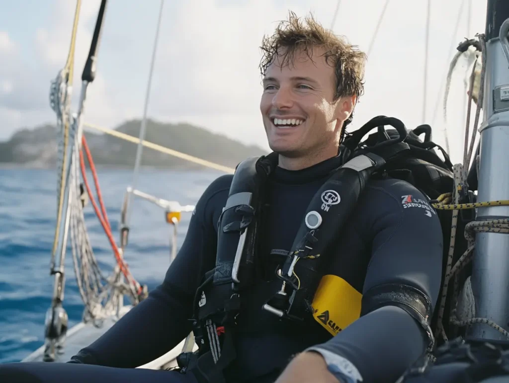 The boat cut across the waves, its motor humming as the morning sun painted the horizon in streaks of gold. Marcus leaned against the rail, wetsuit half-zipped, his eyes alive with anticipation. He could already feel the pull of the ocean beneath him, beckoning him into its hidden world. Aaron, manning the controls, glanced over his shoulder with a grin.