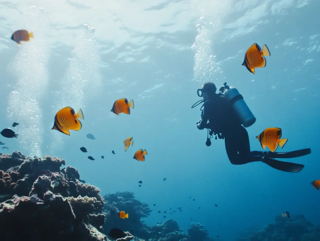 Damselfish burst from a branching coral, sparks of blue against rust-red. Marcus filmed them weaving through the reef, vanishing as quickly as they appeared. A cloud of silversides rippled past, parting around him like a living curtain, moving as one. The beauty pressed against his chest like a weight.