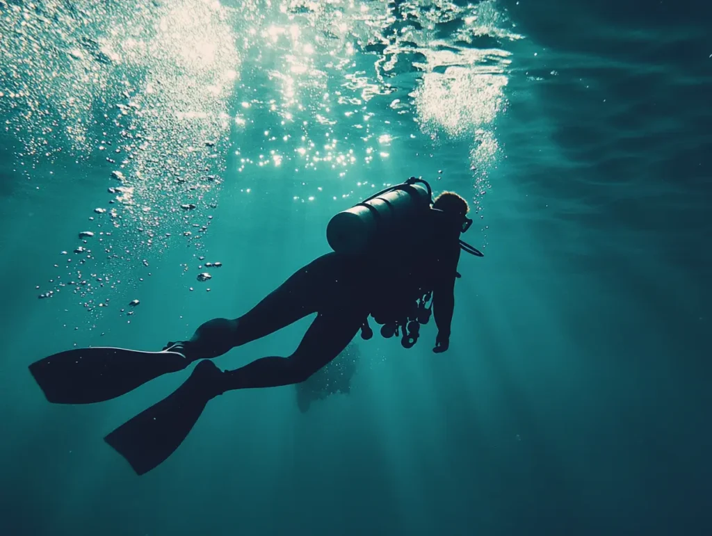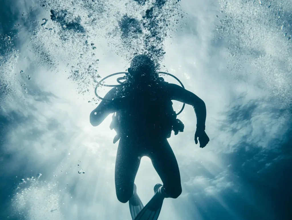 Marcus laughed under his breath, slid his mask into place, and settled on the edge of the boat. For a moment he just looked into the depths — a vast curtain of shimmering blue, hiding everything, promising everything. Then he tipped backward and the sea swallowed him whole.