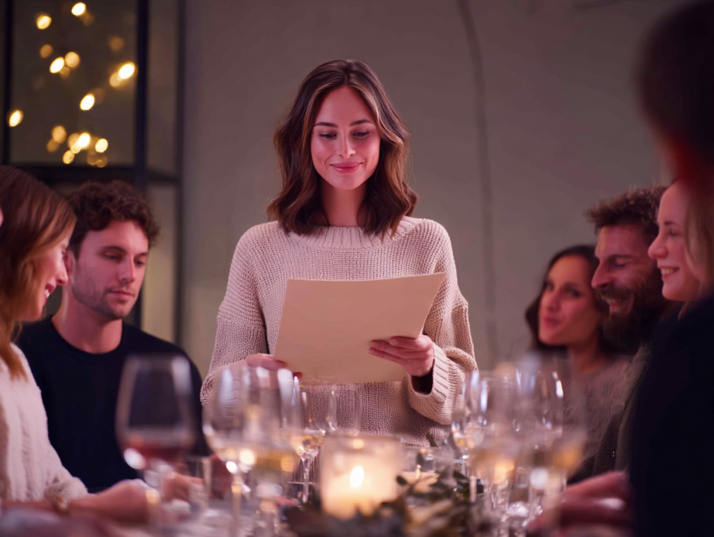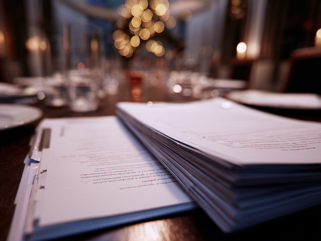 Someone poured water. Someone else commented on the food. The conversation had the quality of a waiting room—everyone present, nobody quite there. Diane came in last, after everyone was seated, and the room adjusted itself around her arrival. She thanked everyone for coming and said she loved this family. She picked up a folder from the sideboard.
