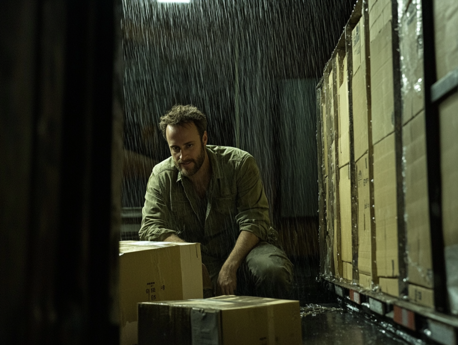 He swore loudly under his breath, pulled over, and grabbed the flashlight from the glovebox. Rain hammered his jacket as he stepped out. One tire of the trailer was ruptured, which would need work later. The SUV’s lights were swallowed by the dark now. He glanced down the road toward the fallen crate and started walking toward it.